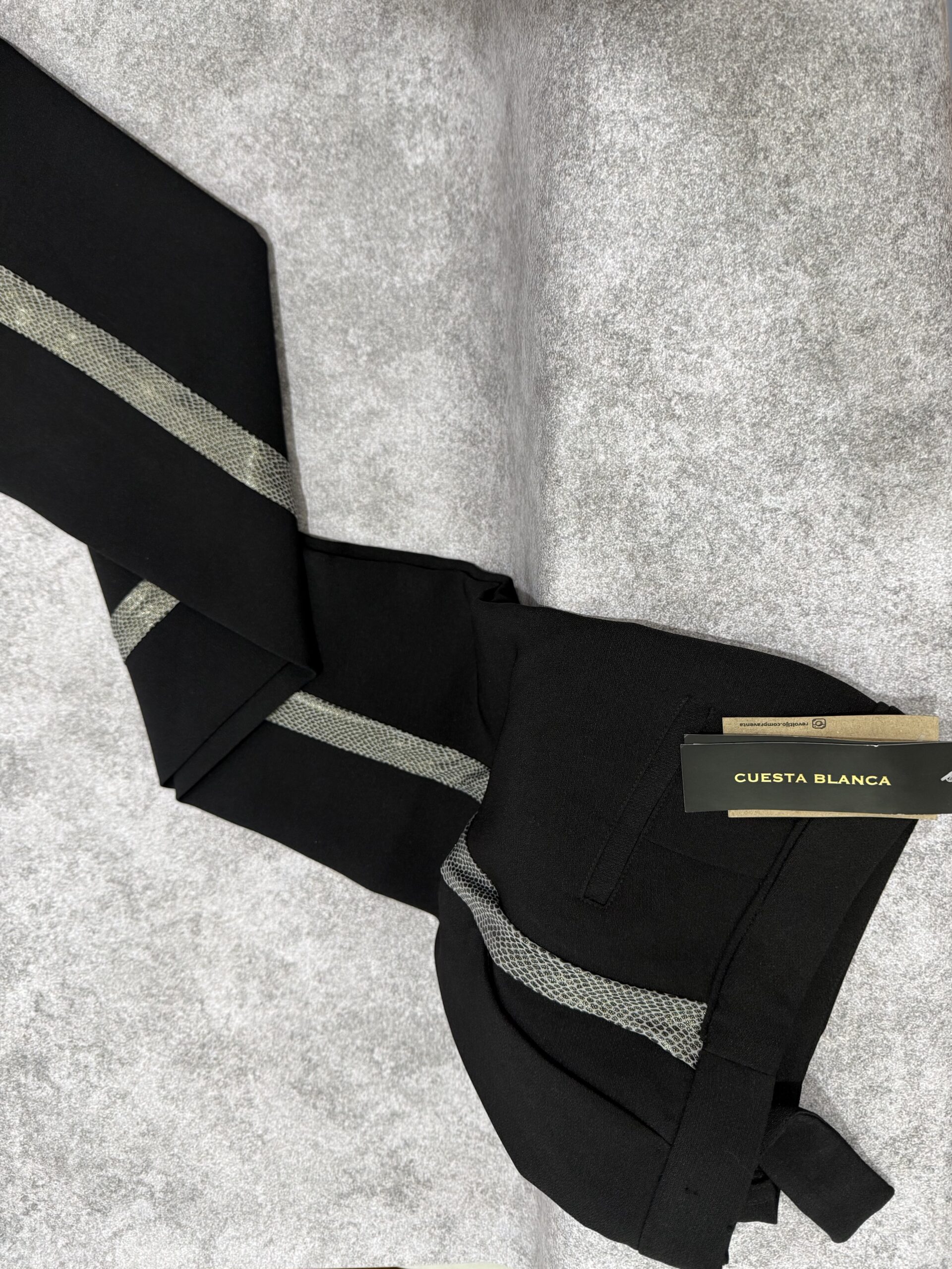 Este pantalón sastrero de Cuesta Blanca es la combinación perfecta entre elegancia y tendencia urbana. Confeccionado en una tela sastrera premium de excelente caída y cuerpo, destaca por su corte recto que estiliza la figura y un detalle lateral de franja texturada tipo víbora en tono gris/plata que le da un toque moderno y arriesgado. Ideal para armar un look de oficina sofisticado o para elevar un outfit nocturno.