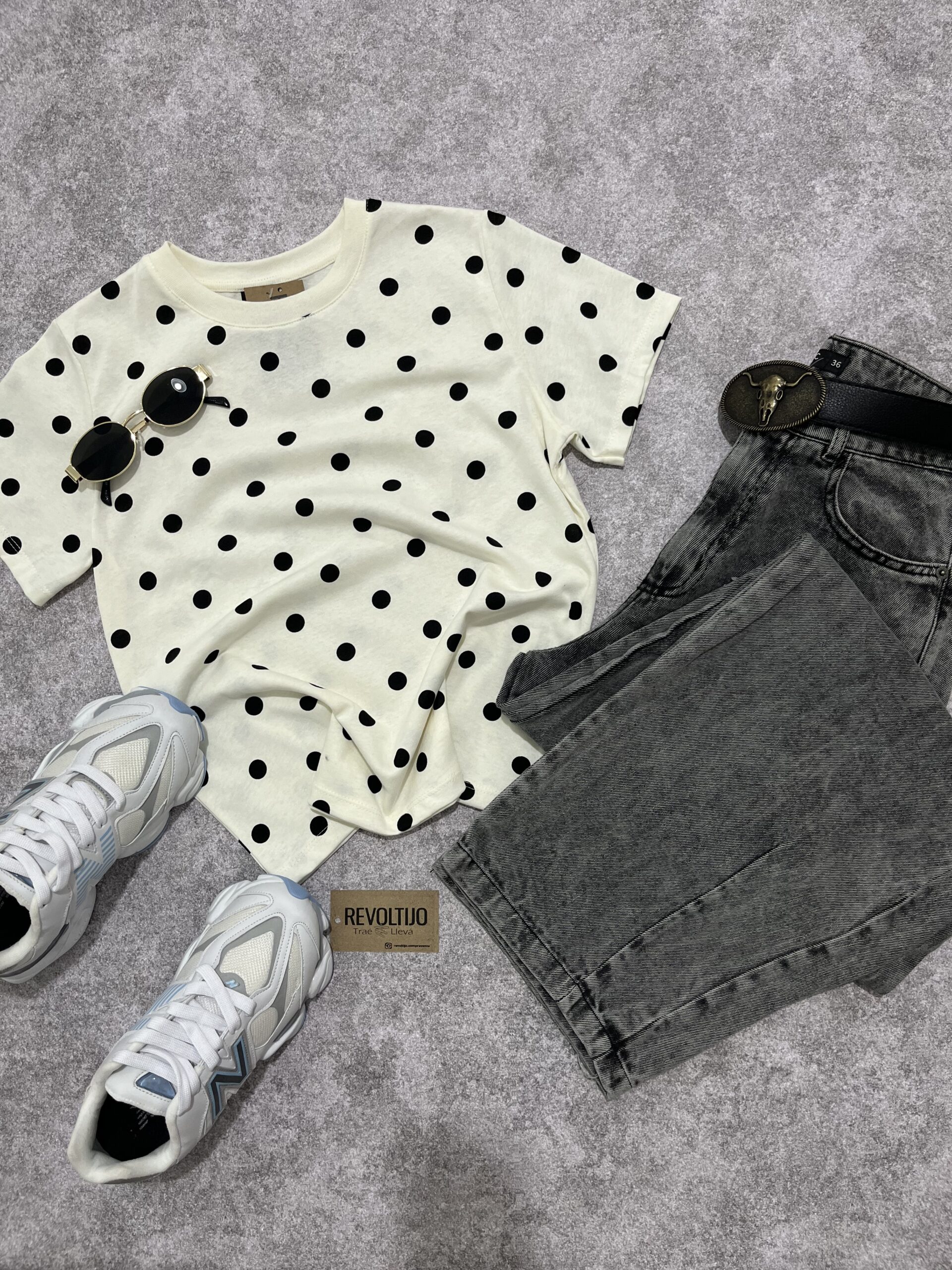 Detalle Distintivo: Estampado integral de lunares en contraste sobre fondo blanco, logrando un equilibrio visual armonioso y moderno.