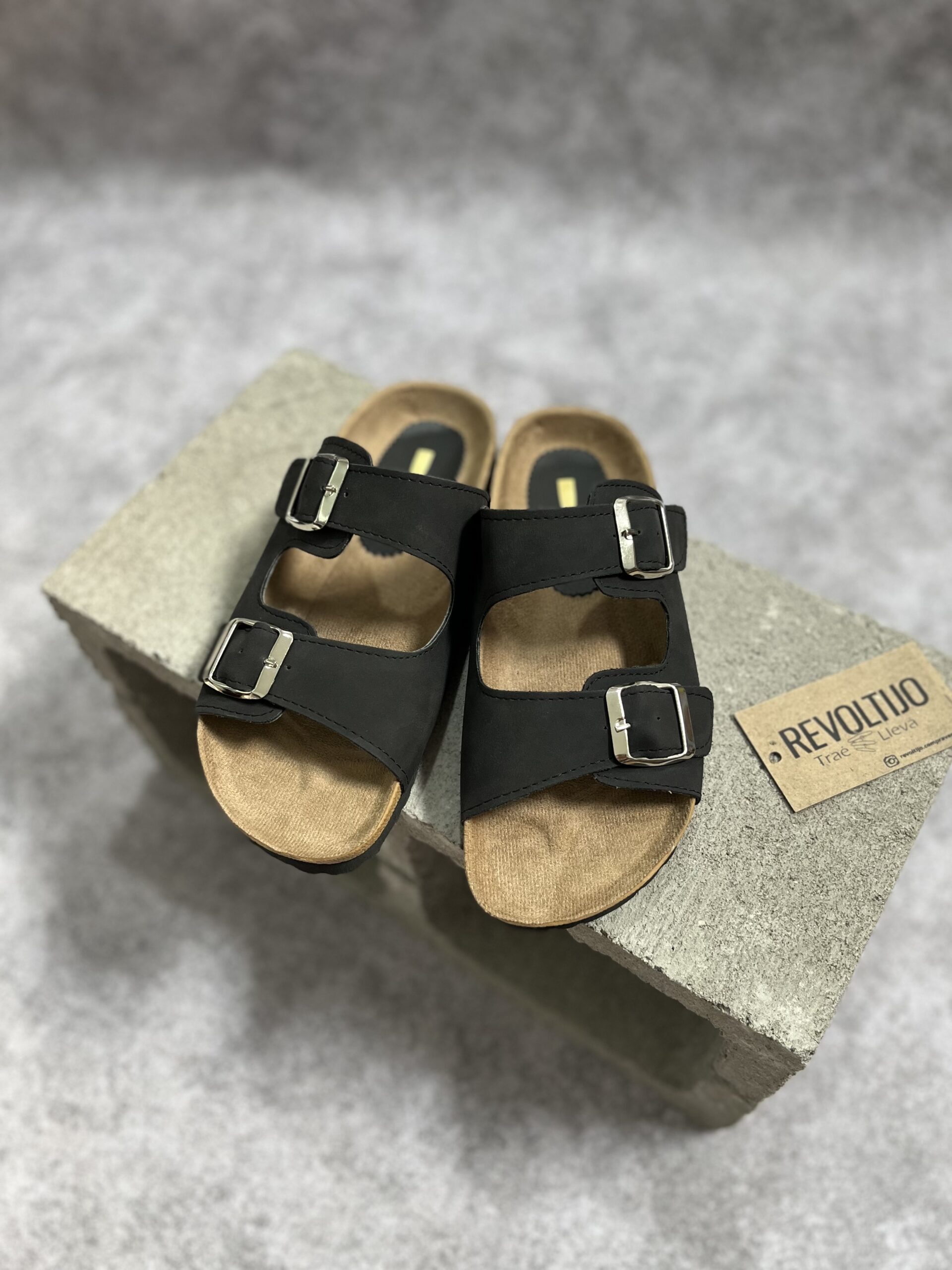 Detalle Distintivo: Hebillas metálicas regulables con acabado en níquel o resina, que permiten adaptar el calce a la medida del empeine.