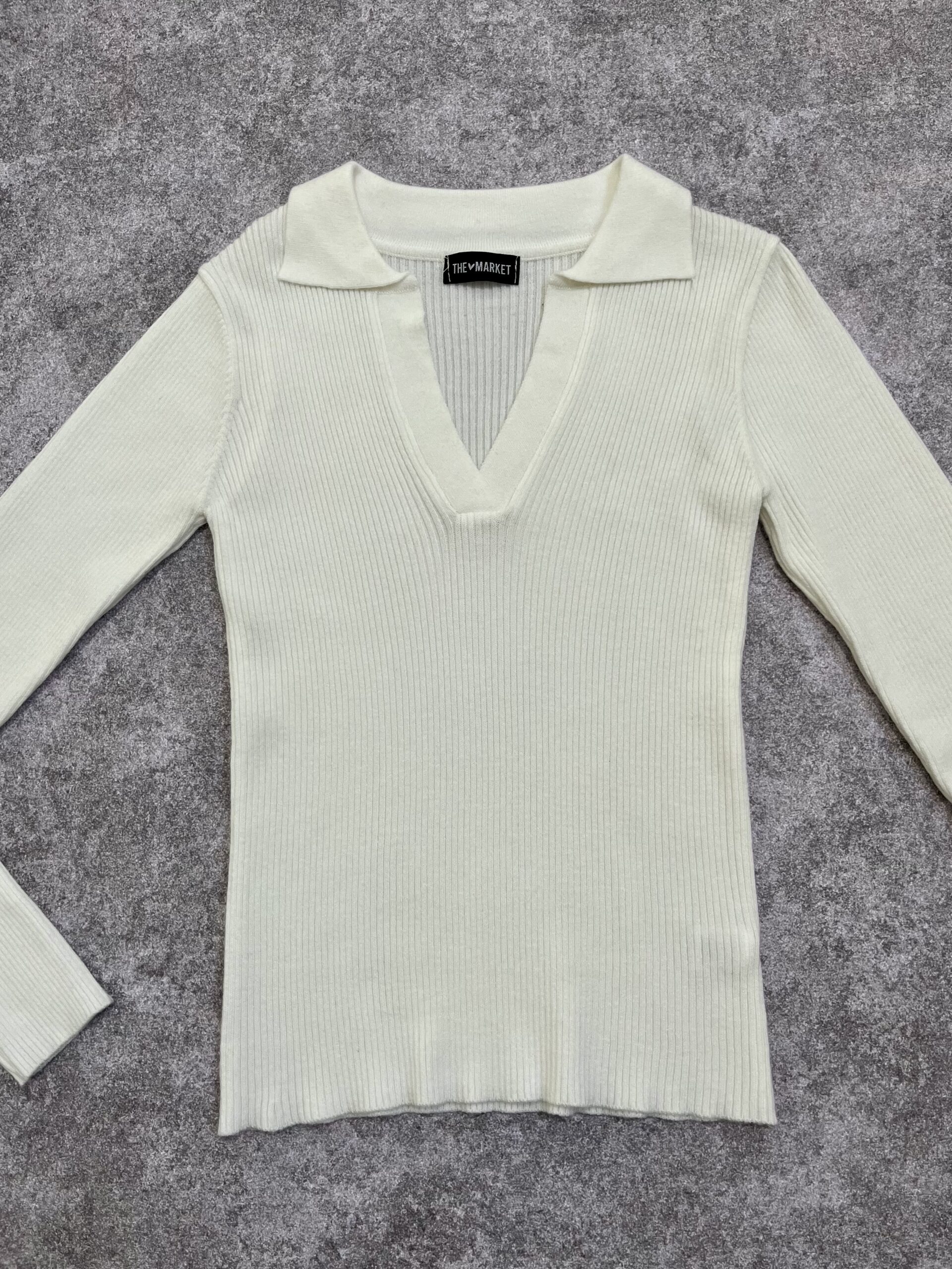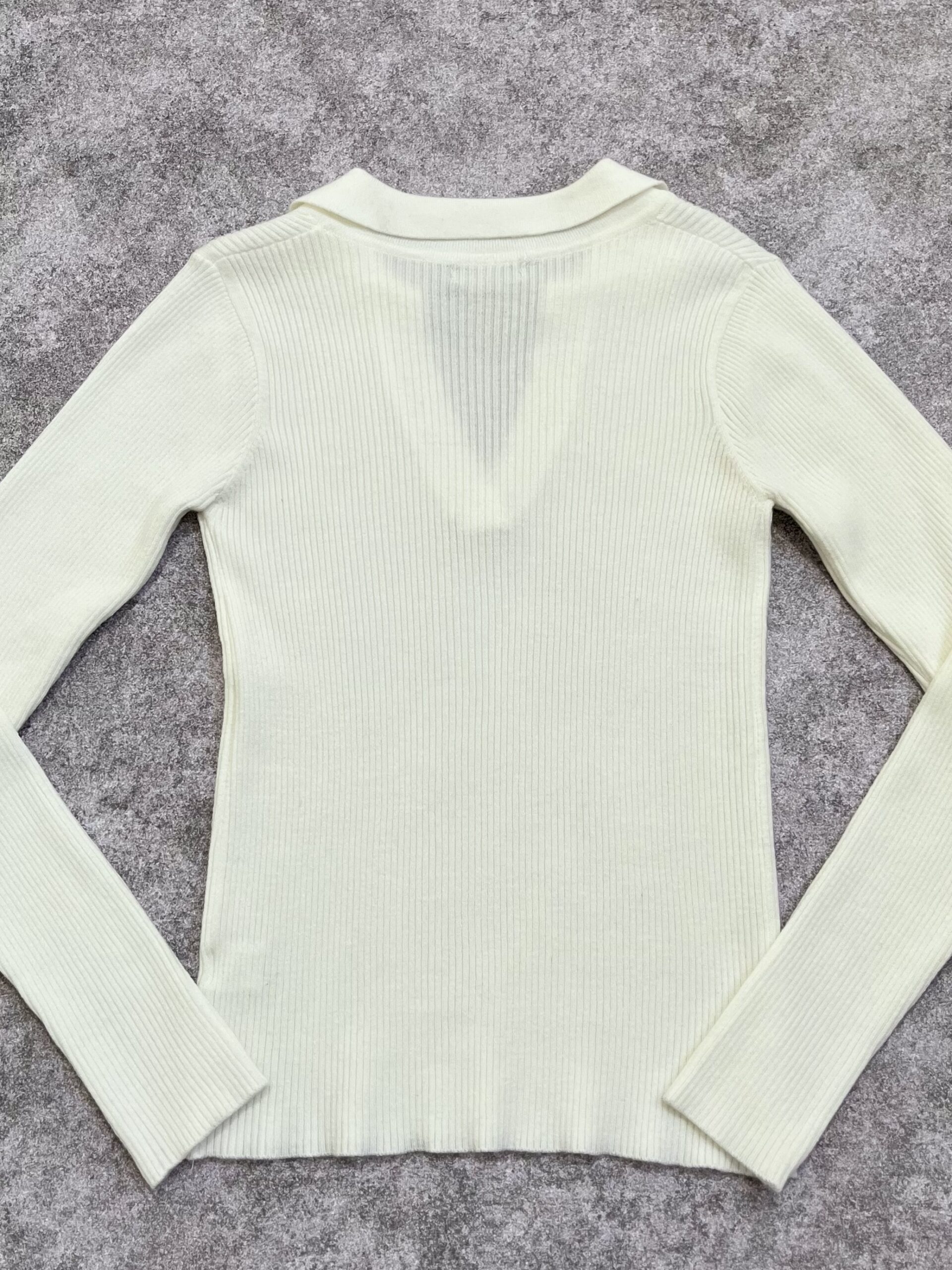Corte: Regular fit con caída natural y mangas largas terminadas en puños de tejido elástico (rib).