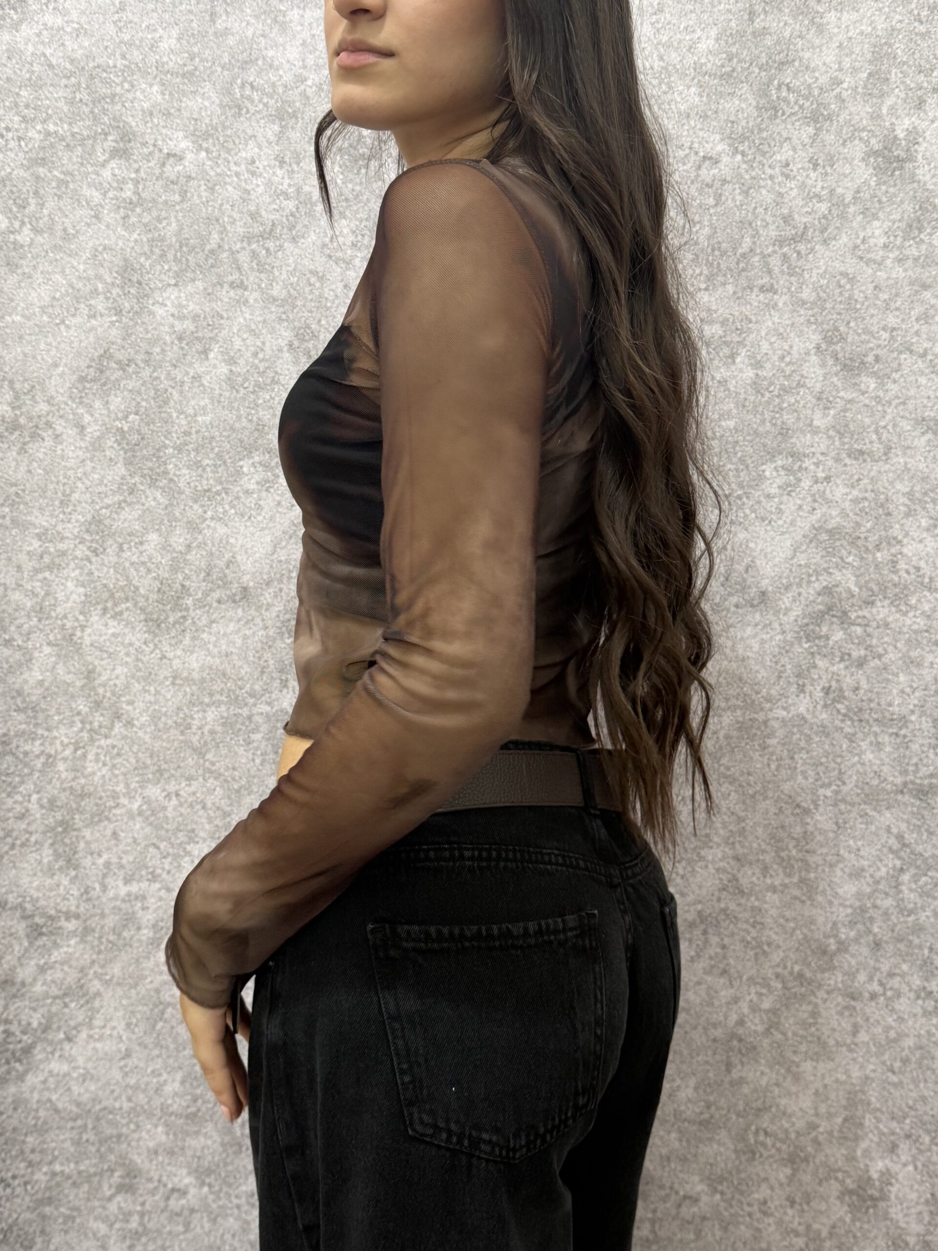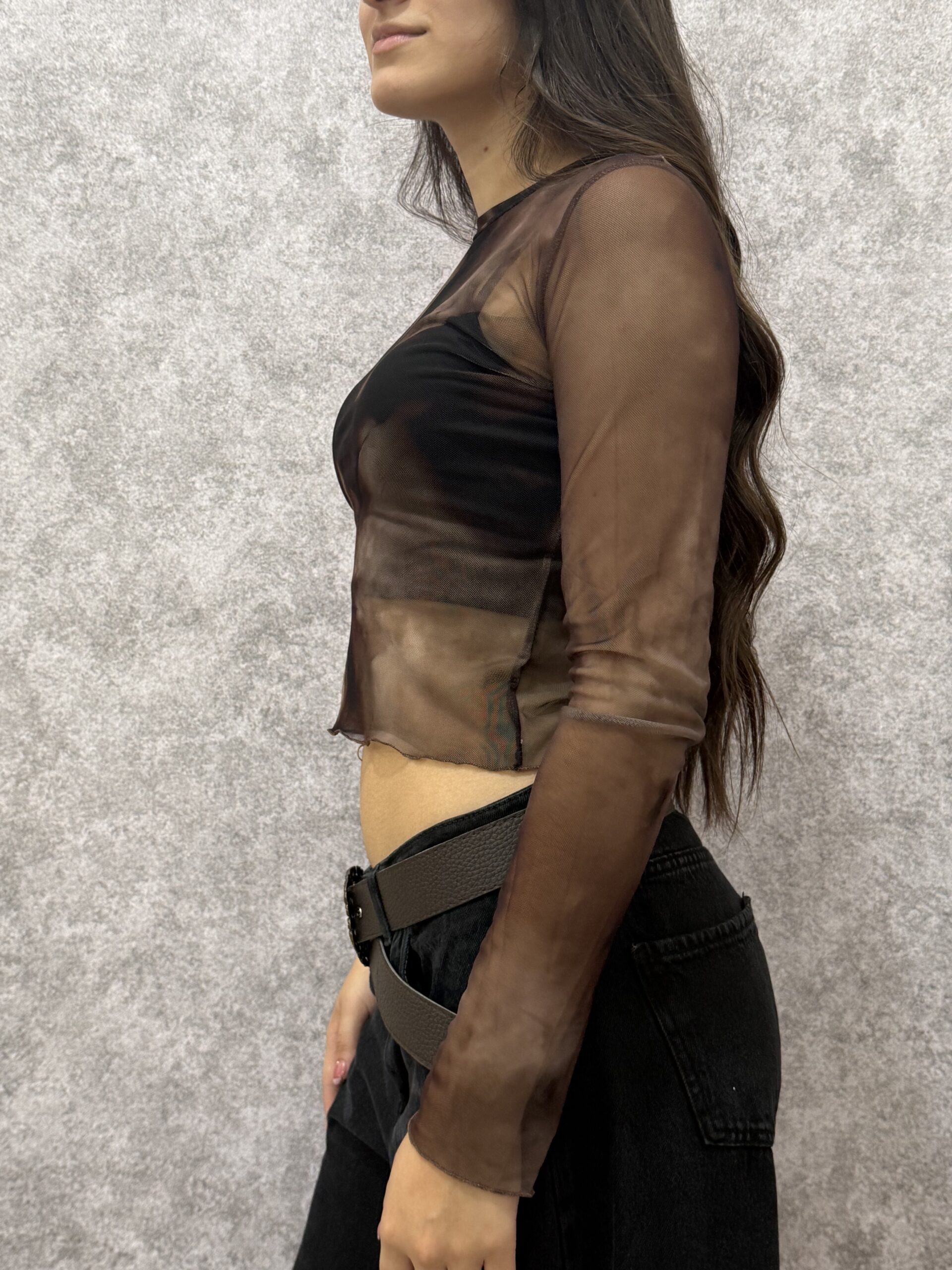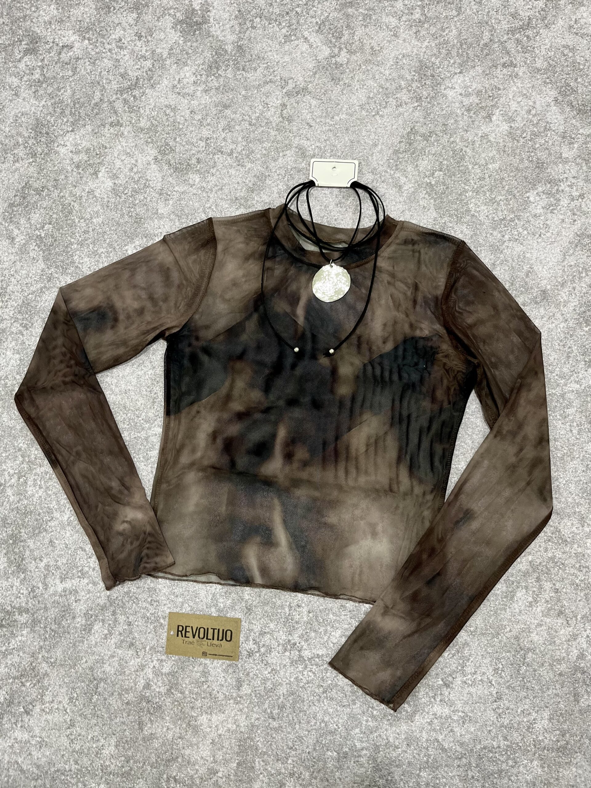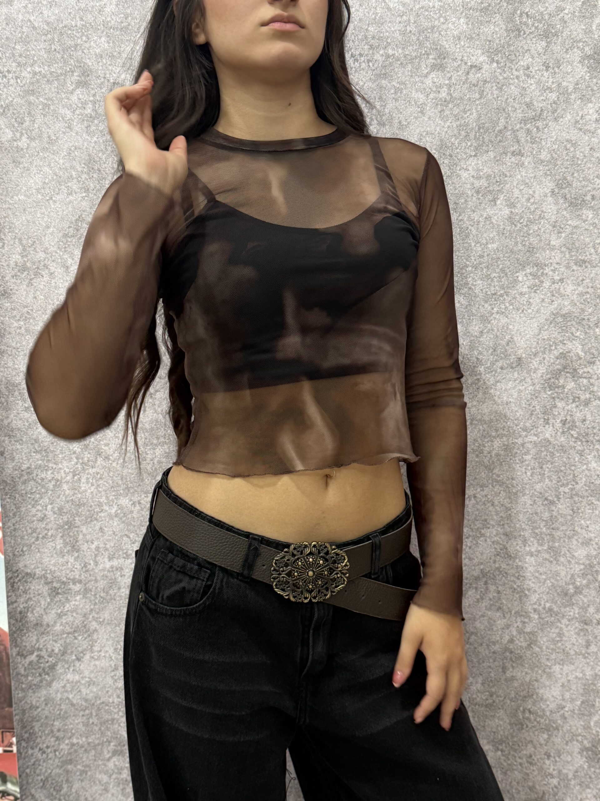 Prenda de diseño sofisticado y sugerente, confeccionada en tul elastizado con transparencia. Su textura ligera y el diseño floral la convierten en la pieza ideal para crear looks de noche con superposiciones, aportando un aire romántico y moderno a la vez.