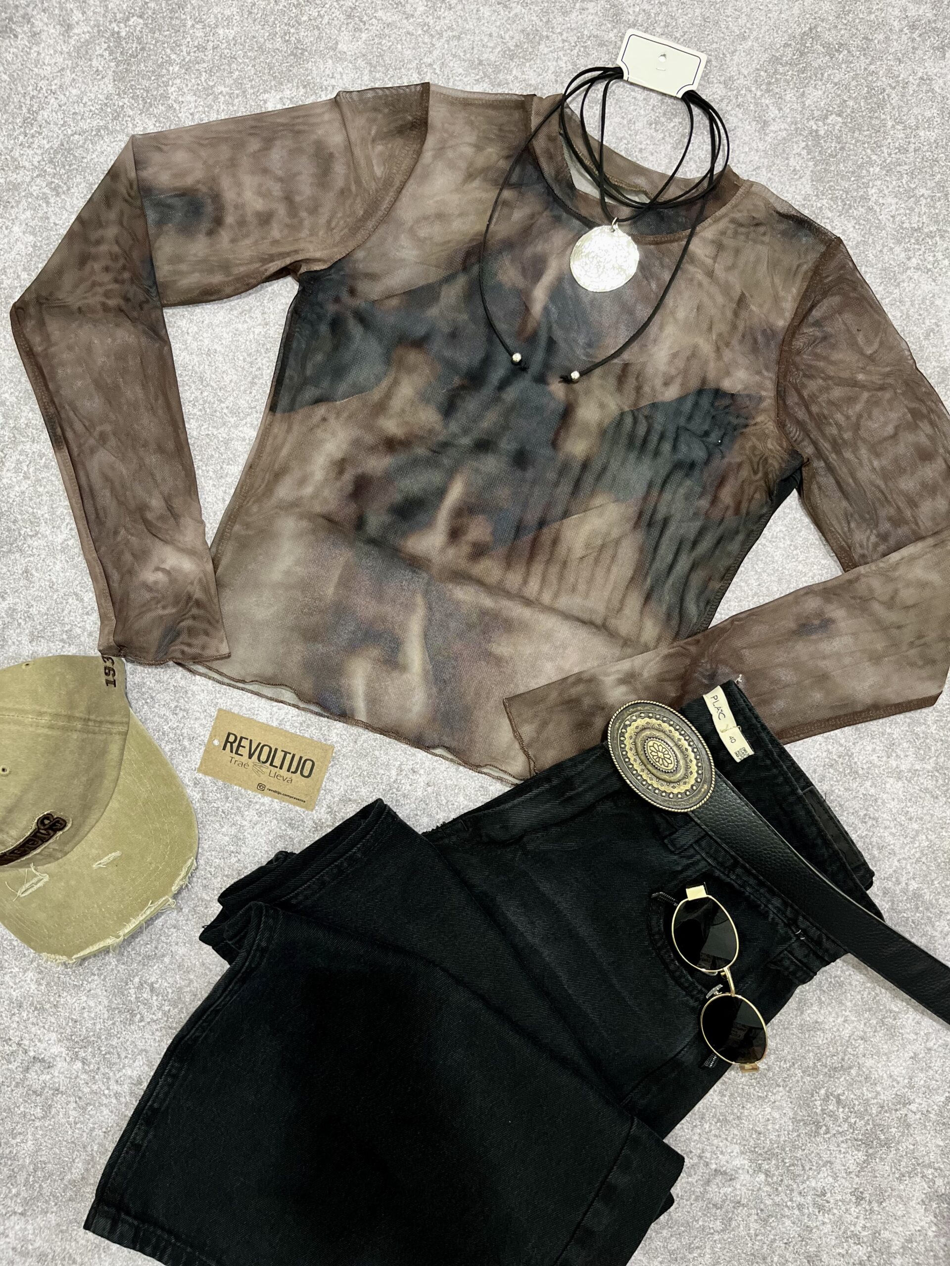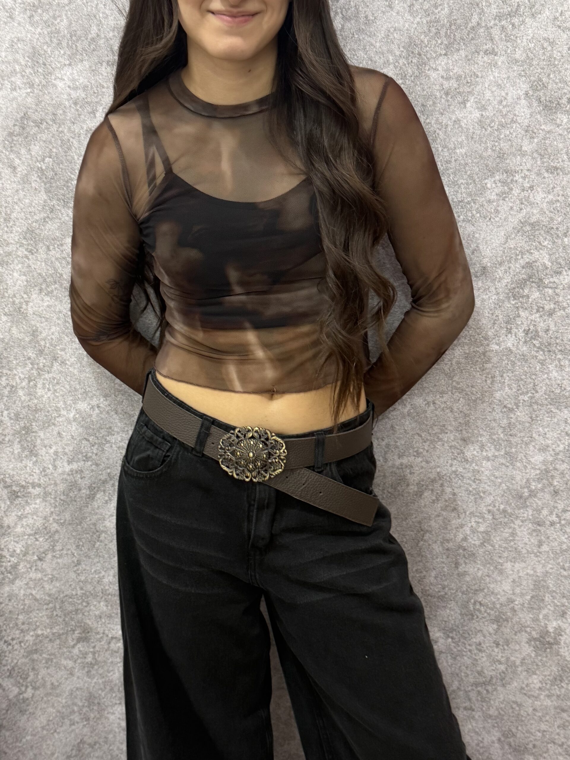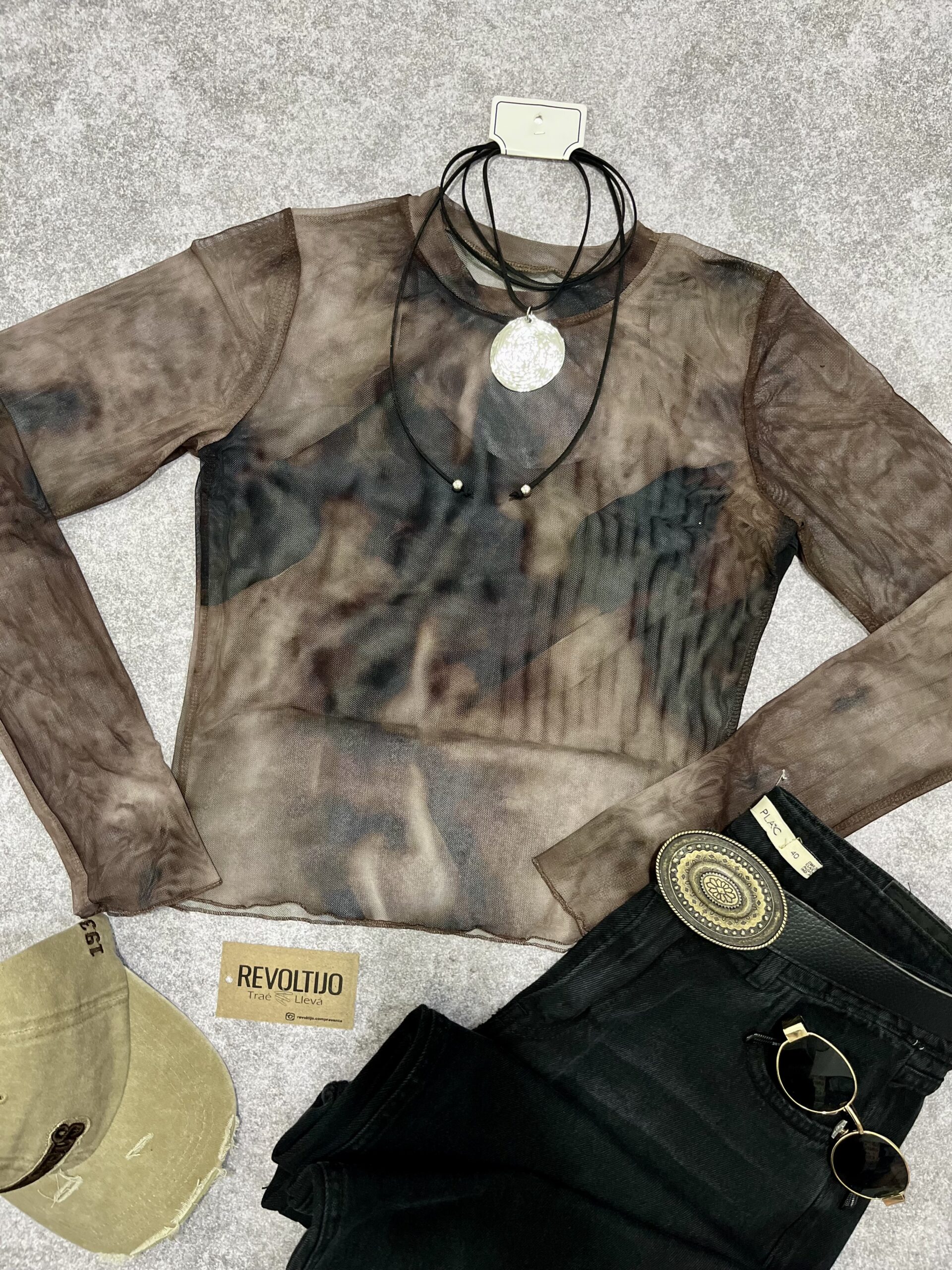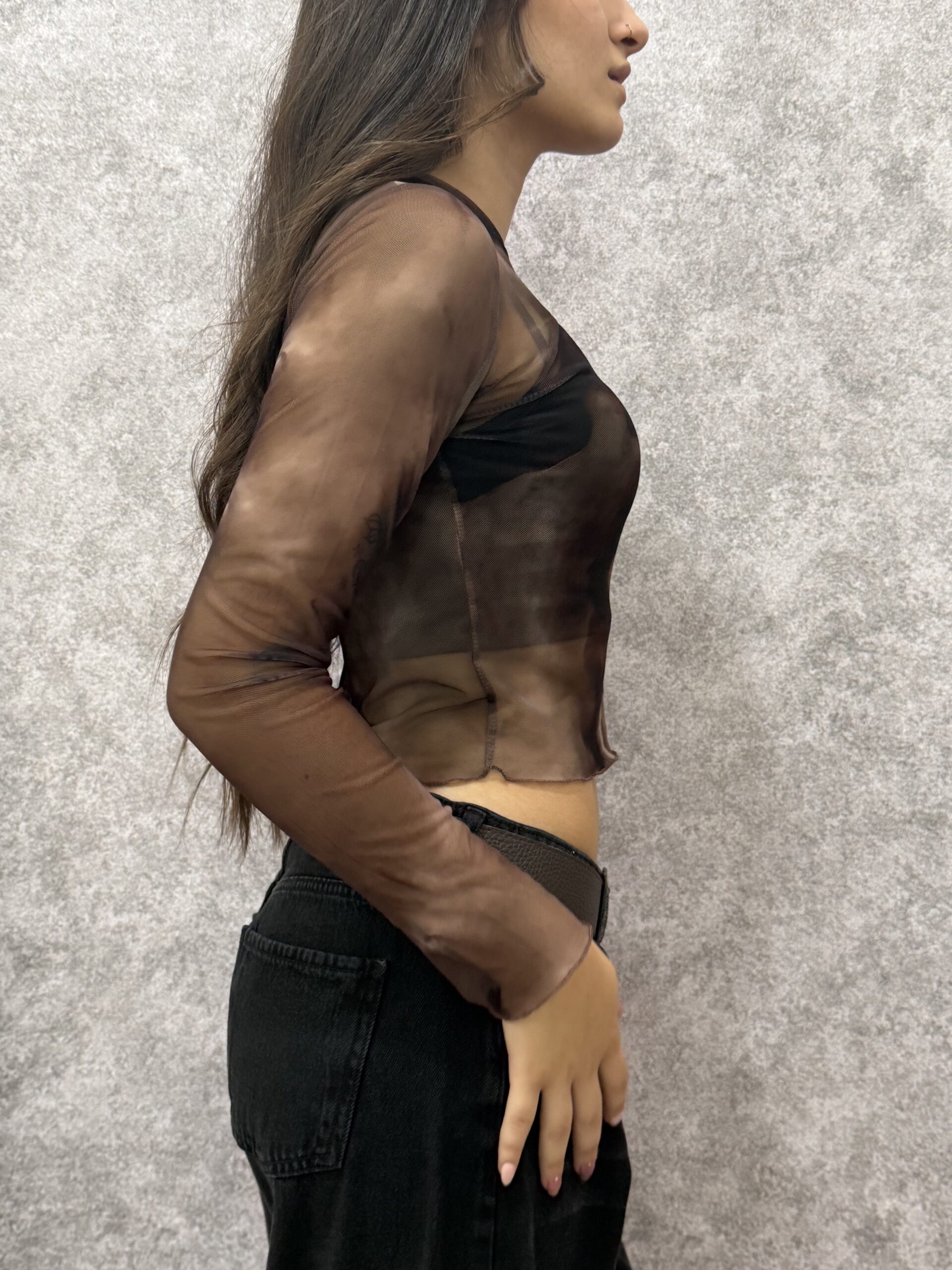Prenda de diseño sofisticado y sugerente, confeccionada en tul elastizado con transparencia. Su textura ligera y el diseño floral la convierten en la pieza ideal para crear looks de noche con superposiciones, aportando un aire romántico y moderno a la vez.